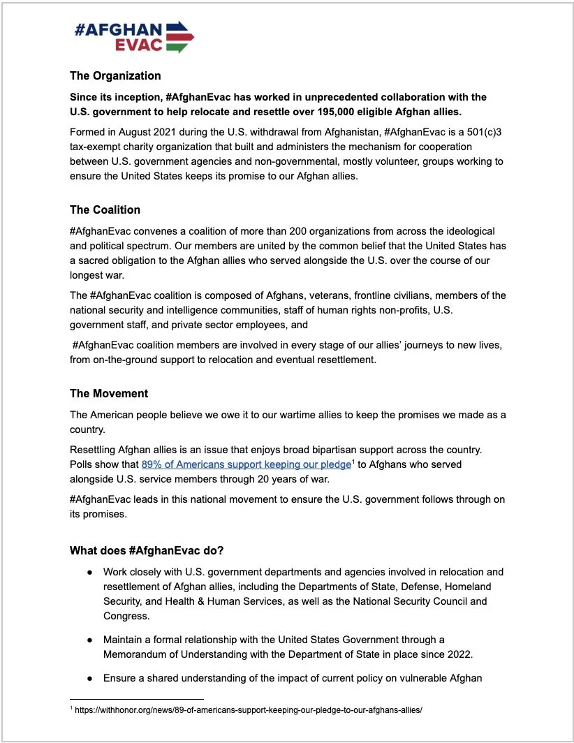 #AfghanEvac د افغانستان د تنظیماتو د قانون په اړه د كګرس د بې عملۍ په اړه اعلامیه